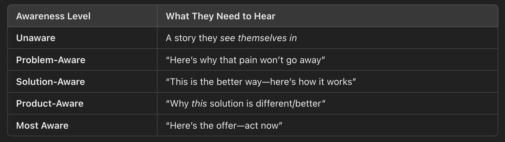 But if they’re solution-aware, you’ll get more traction with:
