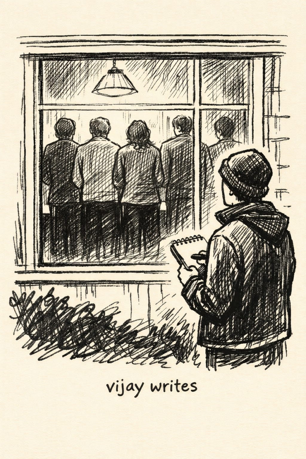 Their writing gets scarier to publish. Because writing from inside the room means your actual perspective is visible. You can’t hide behind neutrality anymore. Some people won’t like what they see.